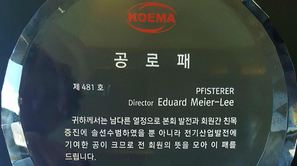 Mit dem „Award of Merit” zeichnet KOEMA Leistungen aus, die wesentlichen Einfluss auf den technischen Fortschritt in Korea haben. Mitglieder der Organisation sind große Konzerne wie Hyundai, kleine und mittlere Unternehmen aus dem Bereich der Elektroindustrie sowie Vertreter staatlicher Institutionen. PFISTERER erhält den Preis für sein andauerndes Engagement und die gute Zusammenarbeit mit lokalen Zulieferern. Der Spezialausrüster und Systemanbieter im Bereich Energie-Infrastruktur ist bereits seit 1986 vor Ort aktiv und u.a. maßgeblich am Auf- und Ausbau des modernen Stromnetzes beteiligt. Die Preisverleihung erfolgte Anfang Dezember vor rund 200 hochrangigen gesellschaftlichen und staatlichen Vertretern in Seoul. Eduard Meier-Lee, Director Strategic Business Development und Repräsentant von PFISTERER in Korea, nahm die Auszeichnung entgegen: „Wir freuen uns sehr über die Ehre, als einziges ausländisches Unternehmen diesen Preis zu erhalten. Er ist die Bestätigung für uns, dass wir mit unseren Produkten und unserem partnerschaftlichen und lösungsorientierten Service die hohen Erwartungen in Südkorea erfüllen.“
