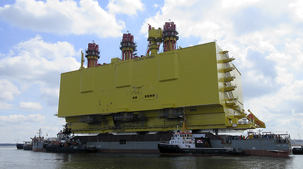 Offshore-Plattformen für Windparks werden zunehmend kompakter designt. Die platzsparende Bauweise bedeutet für die Verkabelung eine neue Herausforderung. Das zeigte sich eindrucksvoll bei den jetzt abgeschlossenen Onshore-Installationen für die Plattform DolWin gamma. Diese entsteht derzeit in der südwestlichen Nordsee als dritter Anschluss des DolWin-Clusters und gehört zum Offshore-Netzanbindungsprojekt des Übertragungsnetzbetreibers TenneT, bei dem erstmalig zwei Schwesterplattformen über ein innovatives Brückensystem mithilfe eines flexiblen Hochspannungskabels mit einem Leiterquerschnitt von 800 mm² verbunden werden. Gebaut wird DolWin3 von GE, als Generalunternehmer im Konsortium mit der Werft.